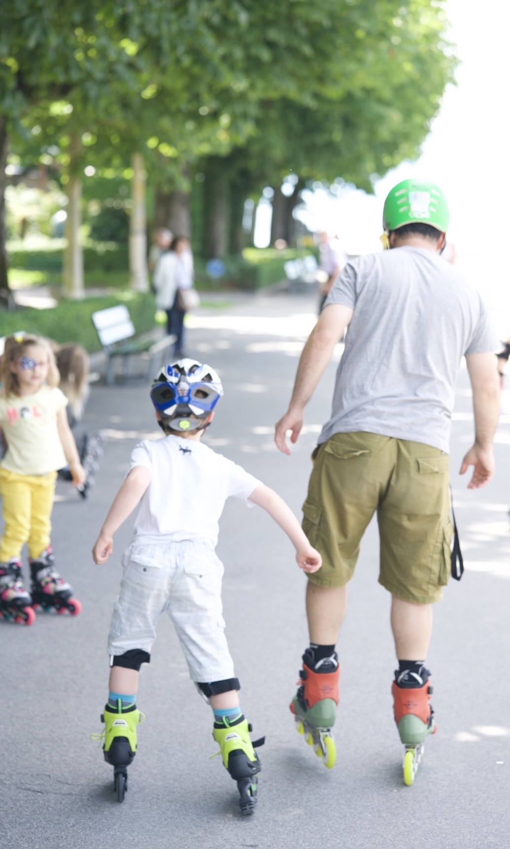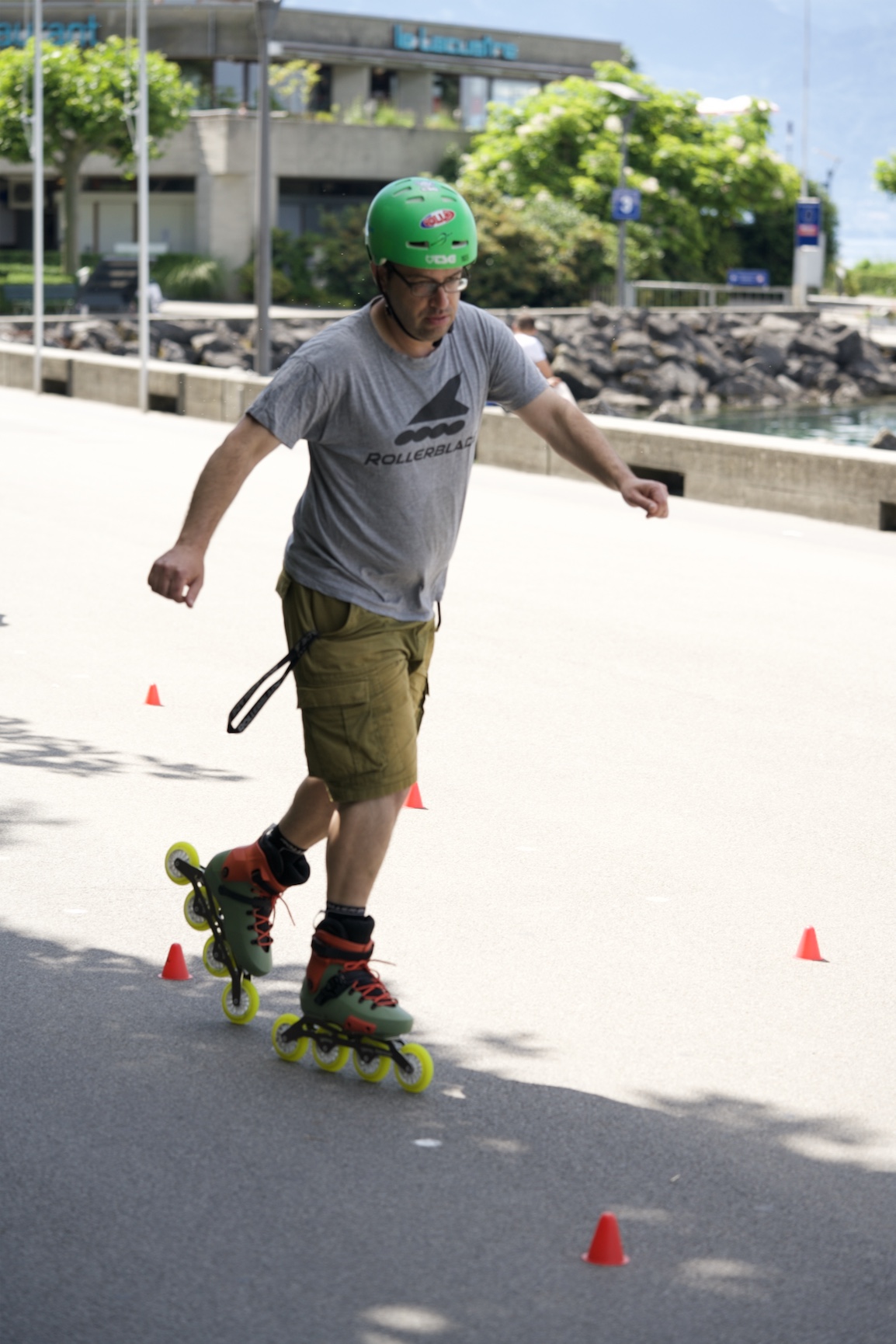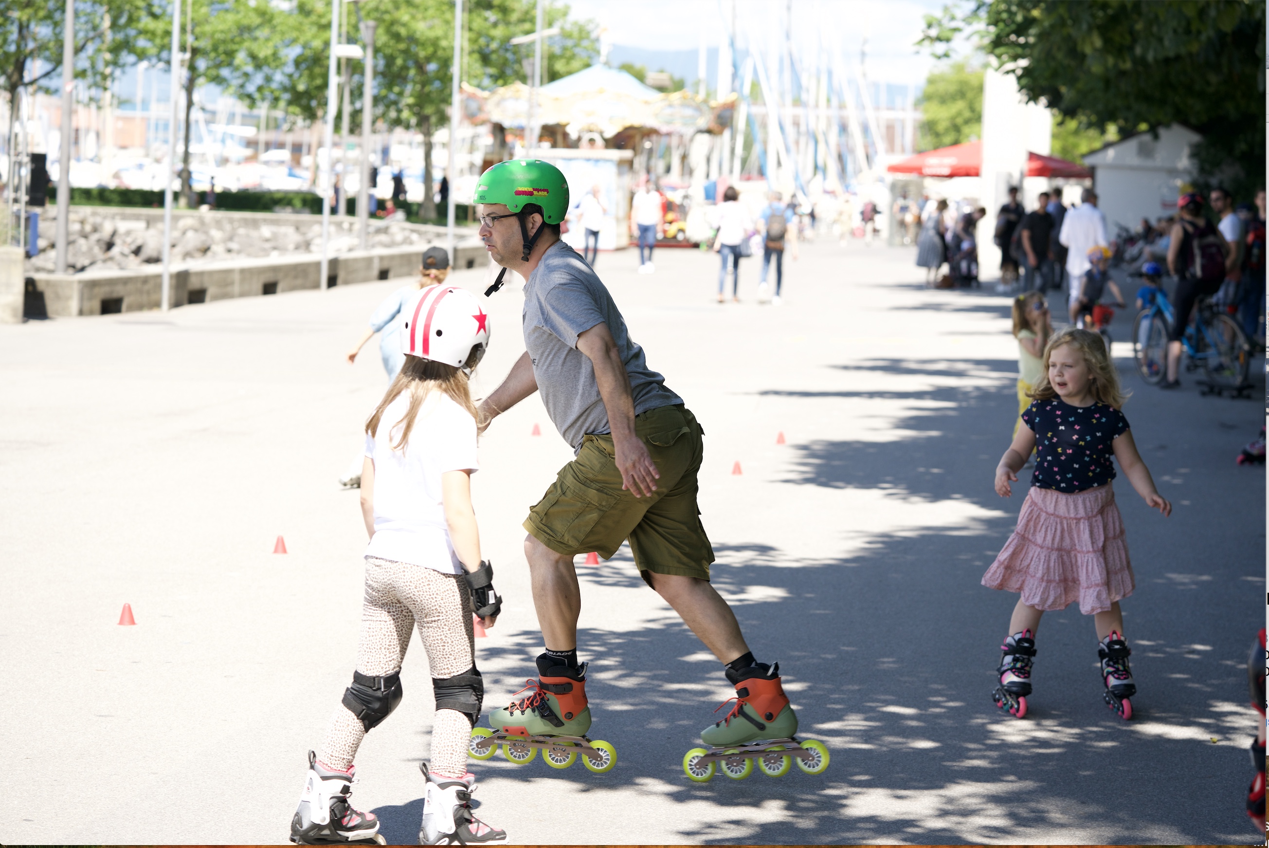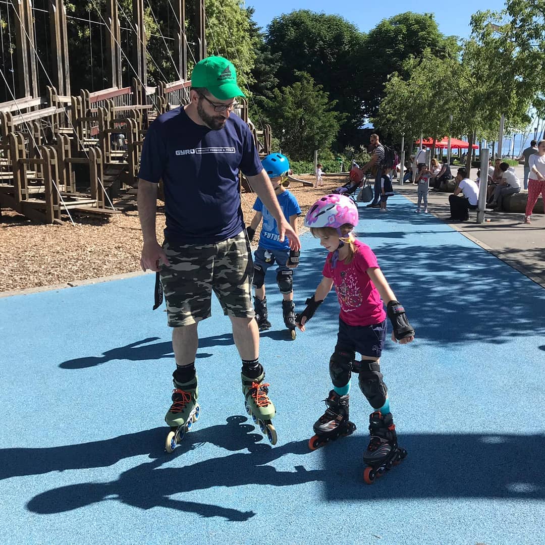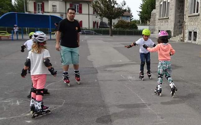 On le voit souvent au bord du lac avec sa fille de 9 ans, qui suit son exemple et est tout-à-fait à l'aise en roulettes.